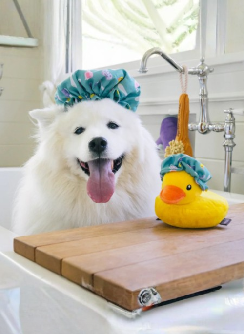Elevate your pup’s playtime with style using P.L.A.Y.'s Splish Splash Shower Quack—an adorable wearable cap and toy all in one! This charming cap isn’t just a fashion statement; it's a dynamic toy filled with crinkles, a squeaker and a bungee, guaranteeing an extra dose of excitement during both playtime and bathtime. Make every moment a playful and stylish adventure for your furry friend!