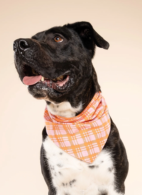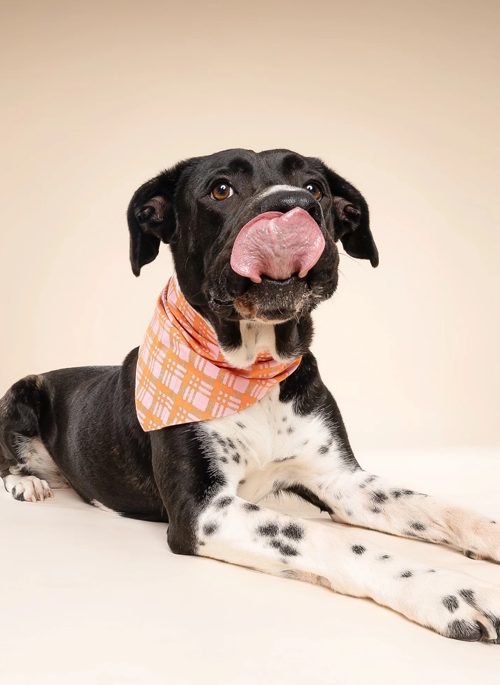 Stevie Dog Bandana - Orange Checkered on Pink Cotton