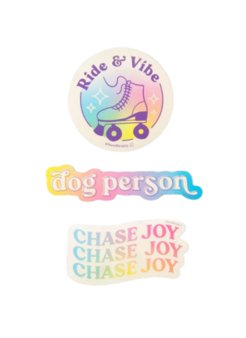 Hey Dog Person! Put some color into your life with this limited edition sticker pack! Express your love for skates and dogs , and show everyone you're here to #ChaseJoy. Ride & Vibe, with us!