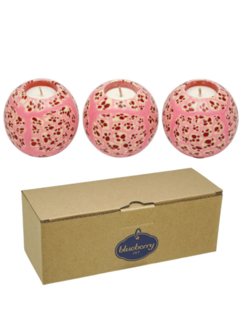 Bring warmth, whimsy, and a pet-loving vibe to any room with the Three Pack Pink Paws Handmade Candles for Home Decor. This charming trio features round, ball-shaped candles adorned with a playful pink paw print pattern, crafted by hand to add character to your space.