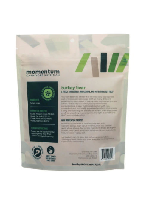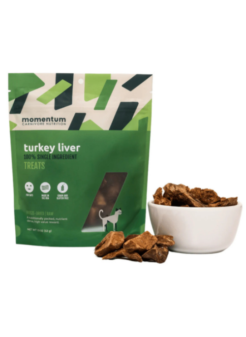 Treat your cat to the delicious and nutritious Momentum Carnivore Nutrition Freeze-Dried Turkey Liver Treats. Made from 100% pure turkey liver, these treats offer a high-quality source of lean protein and essential nutrients, providing a healthy and flavorful snack that supports your cat’s overall well-being.