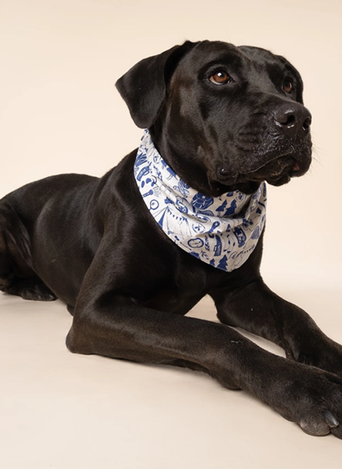 Tailor cut, double-sided dog bandana - sized & ready to tie on.