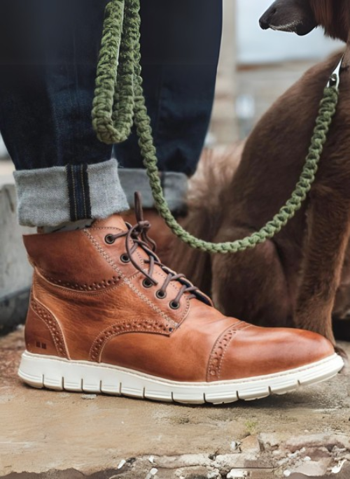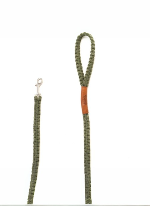 Sage Crochet Lead - Heavy crochet texture with handmade detail. The faux leather stitched sleeve, below the handle, is branded with The Paws.