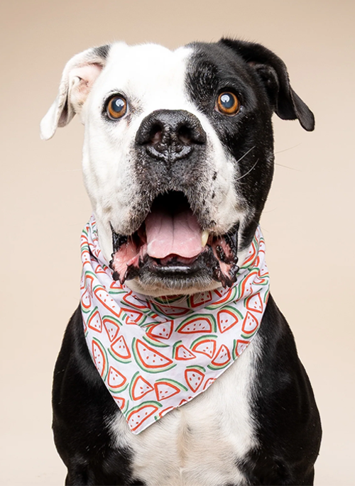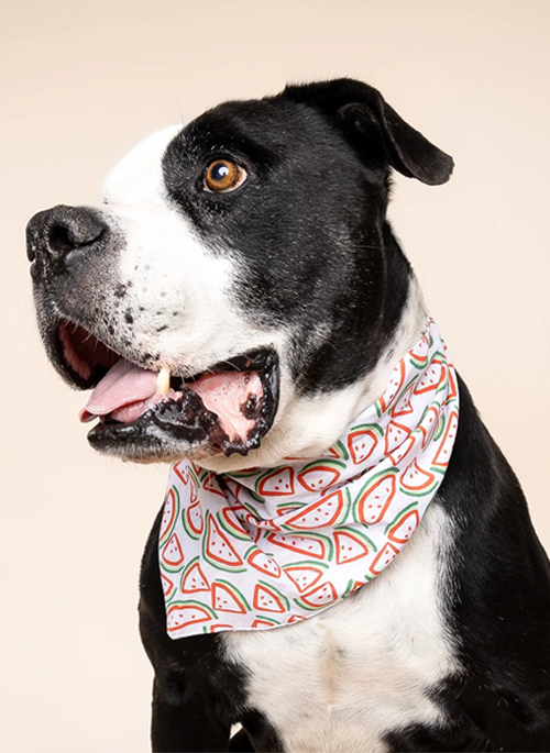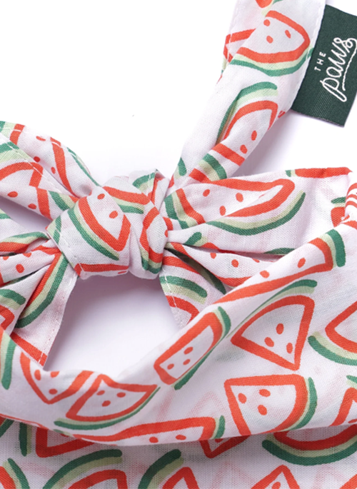 Slices of fresh melon on this bright bandana from The Paws.
