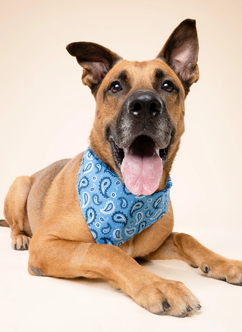 Tailor cut, double-sided dog bandana - sized & ready to tie on.