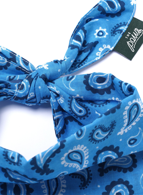Classic everyday bandana - blue paisley pattern with teardrop shaped details.