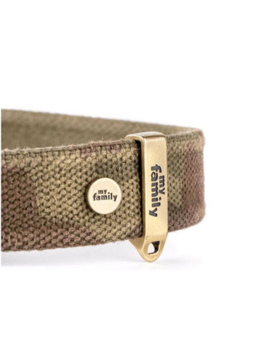 The West Point collection is characterized by a high-quality Italian Nylon that comes in a camouflage style, with Antique English Brass finishes. This collection is also embellished with two unique details: the D-Ring half-ring that returns back into its own position to facilitate the anchoring of the leash and the handy Tag-Holder ring for attaching the tag.