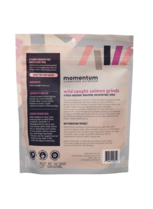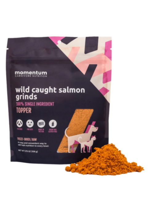 Enhance your pet’s diet with the Momentum Carnivore Nutrition Freeze-Dried Wild-Caught Salmon Topper. Made from 100% pure wild-caught salmon, this nutrient-dense topper provides a rich source of high-quality protein and essential omega-3 fatty acids, making it a wholesome and flavorful addition to your dog or cat’s meals.
