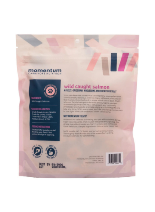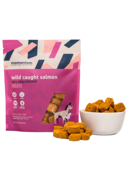 Indulge your pet with the pure, natural taste of Momentum Carnivore Nutrition Freeze-Dried Wild-Caught Salmon Treats. Sourced from wild-caught salmon, these treats are rich in high-quality protein and essential omega-3 fatty acids, providing a healthy and flavorful snack that supports your dog or cat’s overall well-being.