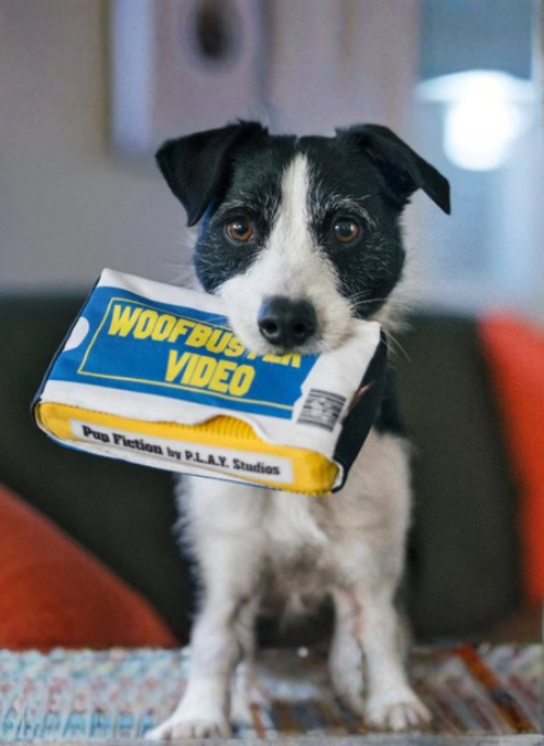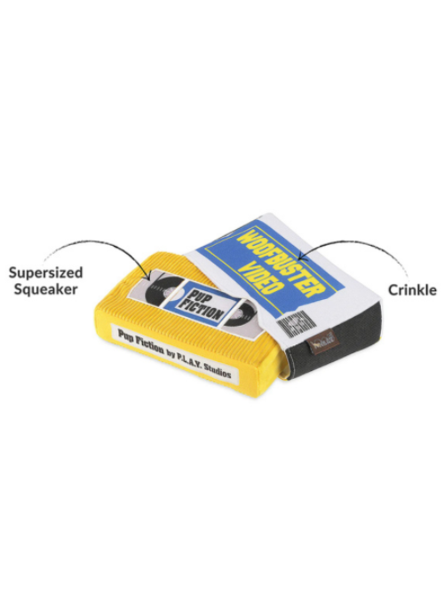 Rewind the fun memories with P.L.A.Y.’s 90s Classics Woofbuster Video toy - the VHS tape that’s a cinematic treat your furry friend will love! This detachable tape features a super-sized squeaker to capture your pup's attention and excitement. The sleeve is crafted from crinkle fabric, adding to the sensory experience. Watch your pup fetch and play with this Woofbuster Video, where every moment is a blockbuster hit in the canine cinema!