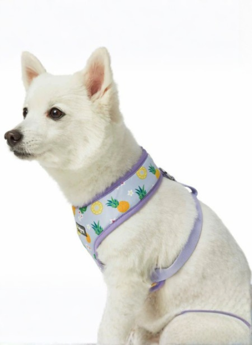 Made for summer adventures, this harness features a vibrant fruit motif with refreshing lemons, juicy pineapples, delightful watermelons, and luscious strawberries—a cheerful, summertime print your pup will love.